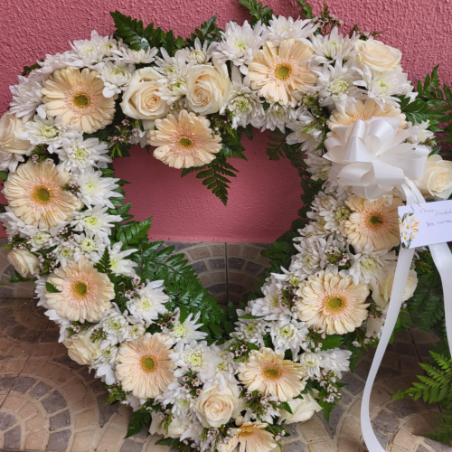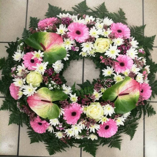 Arranjos florais, desde os mais simples, aos mais elaborados, palmas e coroas de flores. Apenas trabalhamos com flores frescas que se mantém apresentáveis durante vários dias.